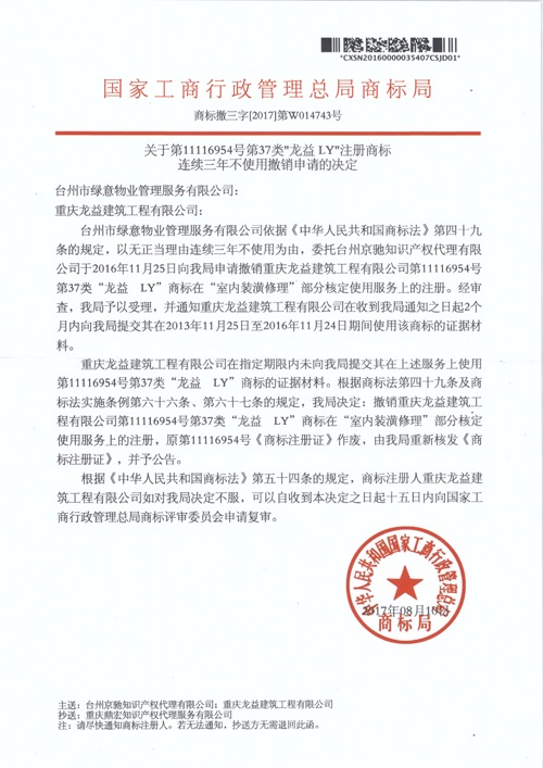 “龍益”撤三決定