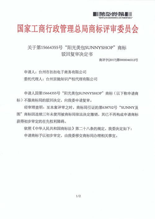 “陽光美包”駁復決定